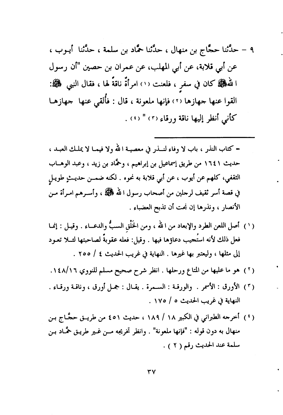 10 - حَدَّثَنَا سُلَيْمَانُ بْنُ حَرْبٍ، وَعَارِمٌ، قَالَا: حَدَّثَنَا حَمَّادٌ، عَنْ أَيُّوبَ، عَنْ أَبِي قِلَابَةَ، عَنْ أَبِي الْمُهَلَّبِ، عَنْ أُبَيِّ بْنِ كَعْبٍ، قَالَ: §أَمَا تَقْرَأُ فِي ثَمَانٍ؟ يَعْنِي الْقُرْآنَ