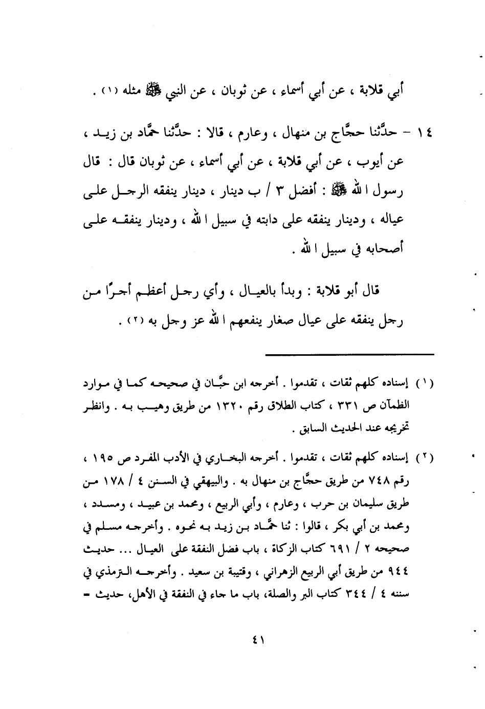 16 - حَدَّثَنَا سُلَيْمَانُ بْنُ حَرْبٍ، وَعَارِمٌ، قَالَا: حَدَّثَنَا حَمَّادُ بْنُ زَيْدٍ، عَنْ أَيُّوبَ، عَنْ أَبِي قِلَابَةَ، عَنْ أَبِي أَسْمَاءَ، عَنْ ثَوْبَانَ، قَالَ سُلَيْمَانُ: رَفَعَهُ، وَقَالَ عَارِمٌ: رَفَعَ الْحَدِيثَ قَالَ: §عَايِدُ الْمَرِيضِ فِي مَخْرَفَةِ -[43]- الْجَنَّةِ (1)