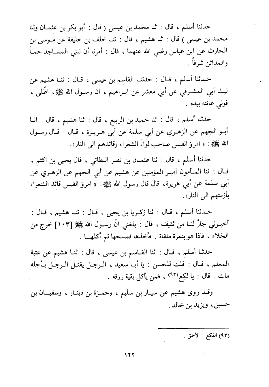 حدثنا أسلم، قَالَ: ثنا عُثْمَانُ بْنُ نَصْرٍ الطَّائِيُّ، قَالَ يَحْيَى بْنُ أَكْثَمَ، قَالَ: ثنا الْمَأْمُونُ أَمِيرُ الْمُؤْمِنِينَ عَنْ هُشَيْمٍ عَنْ أَبِي الْجَهْمِ عَنِ الزُّهْرِيِّ عَنْ أَبِي سَلَمَةَ عَنْ أَبِي هُرَيْرَةَ، قَالَ قَالَ رَسُولُ اللَّهِ صَلَّى اللَّهُ عَلَيْهِ وَسَلَّمَ: «امْرُؤُ الْقَيْسِ قَائِدُ الشُّعَرَاءِ بِأَزِمَّتِهِمْ إِلَى النار» .