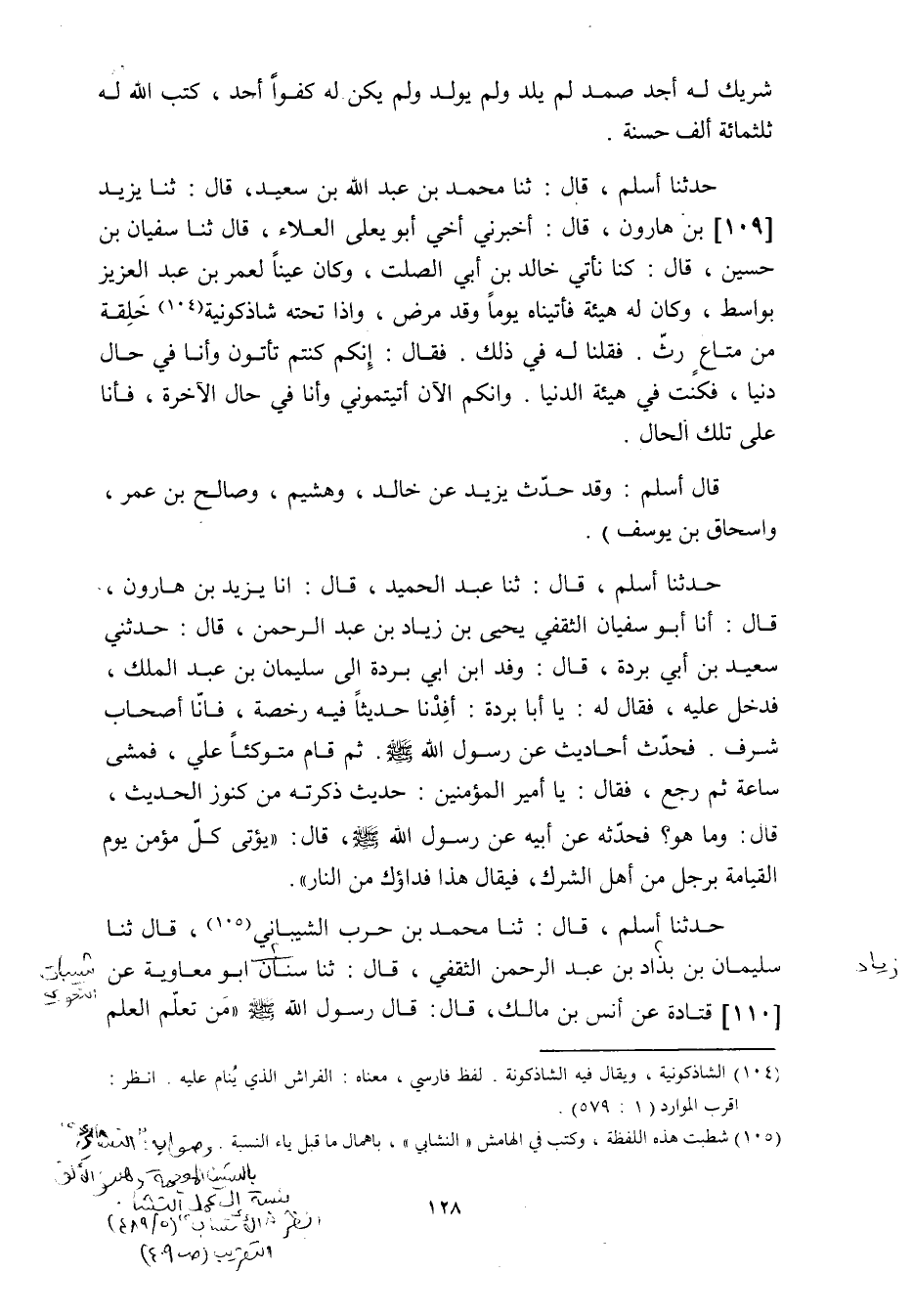 حدثنا أسلم، قَالَ: ثنا مُحَمَّدُ بْنُ حَرْبٍ الشَّيْبَانِيُّ «105» ، قَالَ ثنا سليمان بن بداد بْنِ عَبْدِ الرَّحْمَنِ الثَّقَفِيُّ، قَالَ: ثنا سِنَانٌ أَبُو مُعَاوِيَةَ عَنْ [110] قَتَادَةَ عَنْ أَنَسِ بْنِ مَالِكٍ، قَالَ: قَالَ رَسُولُ اللَّهِ صَلَّى اللَّهُ عَلَيْهِ وَسَلَّمَ «مَنْ تَعَلَّمَ الْعِلْمَ