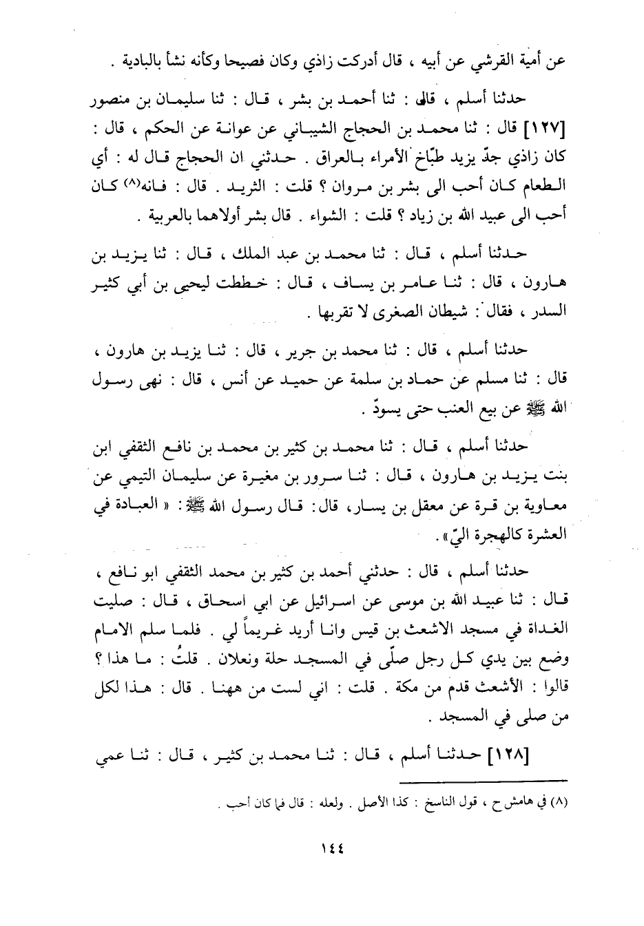 [128] حدثنا أسلم، قال: ثنا محمد بن كثير، قال: ثنا عمي
