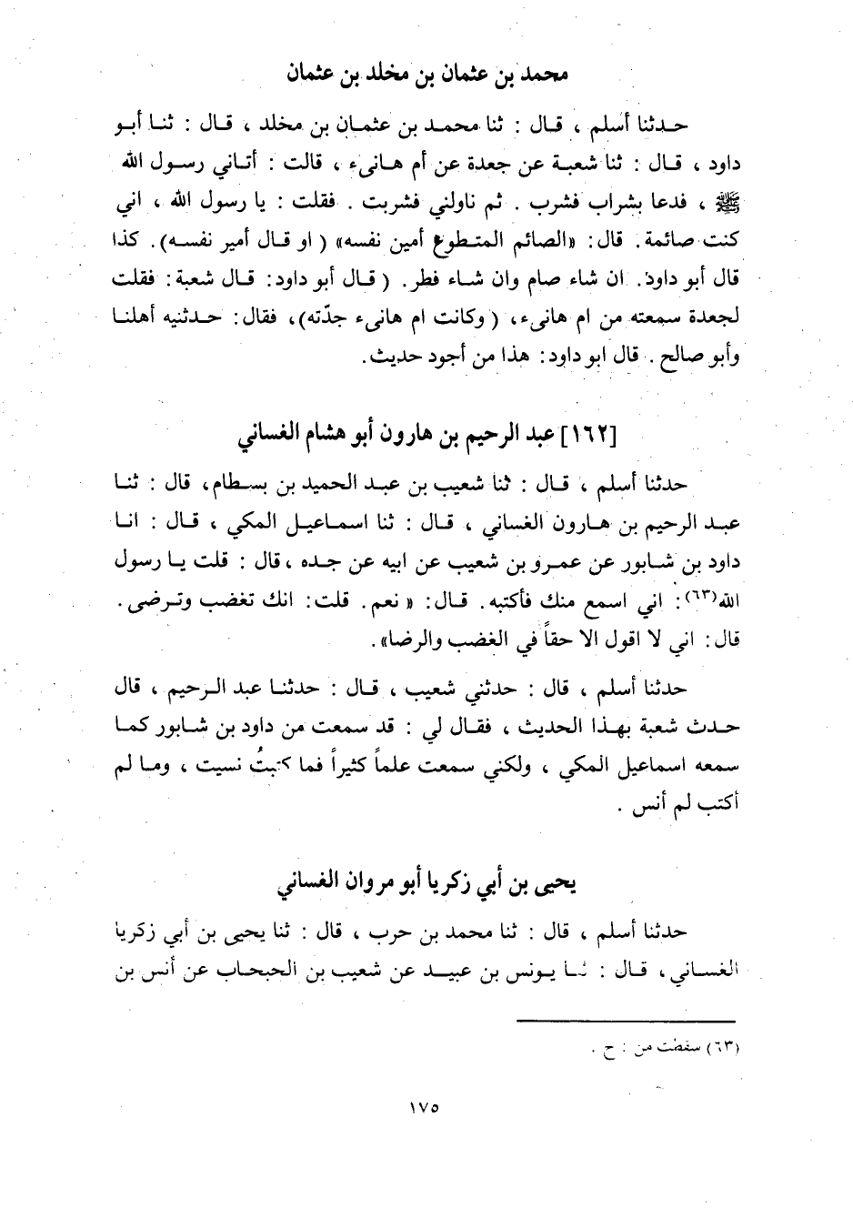 حدثنا أسلم، قَالَ: ثنا شُعَيْبُ بْنُ عَبْدِ الْحَمِيدِ بْنِ بِسْطَامٍ، قَالَ: ثنا عَبْدُ الرَّحِيمِ بْنُ هَارُونَ الْغَسَّانِيُّ، قَالَ: ثنا إِسْمَاعِيلُ الْمَكِّيُّ، قَالَ: أنا دَاوُدُ بْنُ شَابُورَ عَنْ عَمْرِو بْنِ شُعَيْبٍ عَنْ أَبِيهِ عَنْ جَدِّهِ، قَالَ: قُلْتُ يَا رَسُولَ اللَّهِ «63» : إِنِّي أَسْمَعُ مِنْكَ فَأَكْتُبُهُ. قَالَ: «نَعَمْ. قُلْتُ: إِنَّكَ تَغْضَبُ وَتَرْضَى.