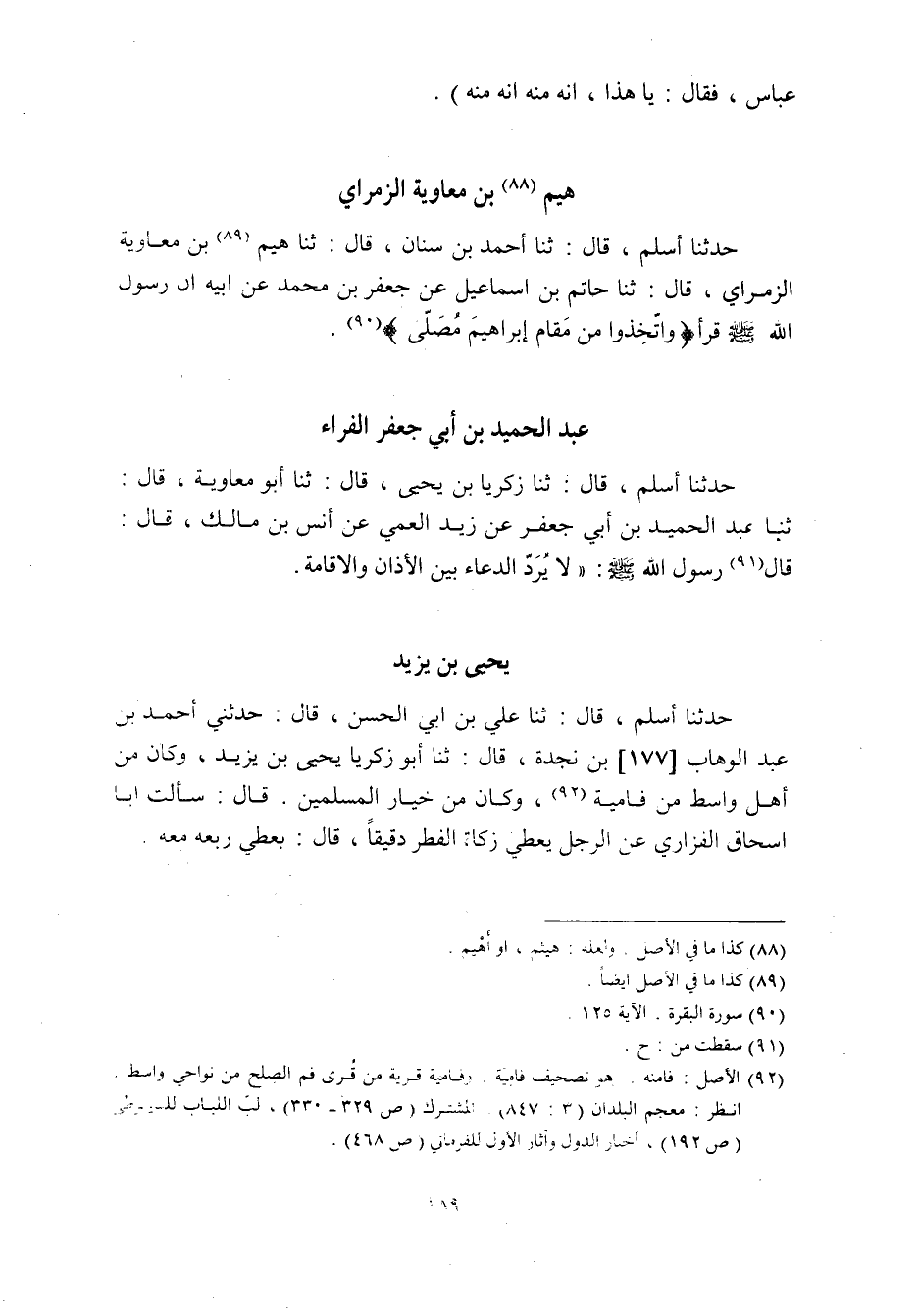 حدثنا أسلم، قال: ثنا زكريا بن يحيى، قال: ثنا أَبُو مُعَاوِيَةَ، قَالَ: