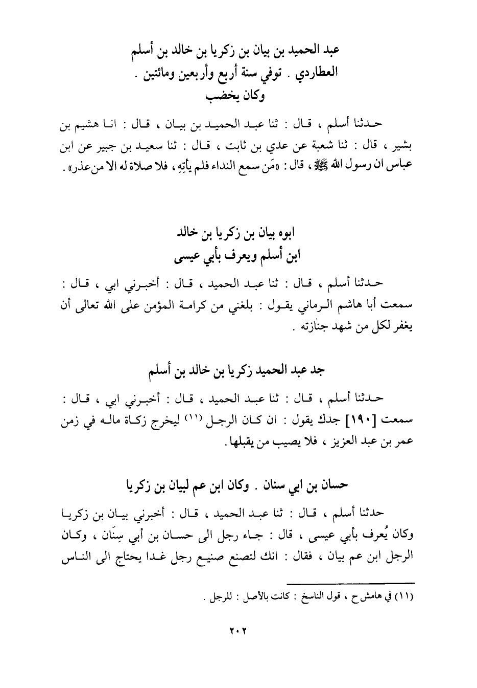 جد عبد الحميد زَكَرِيَّا بن خالد بن أسلم