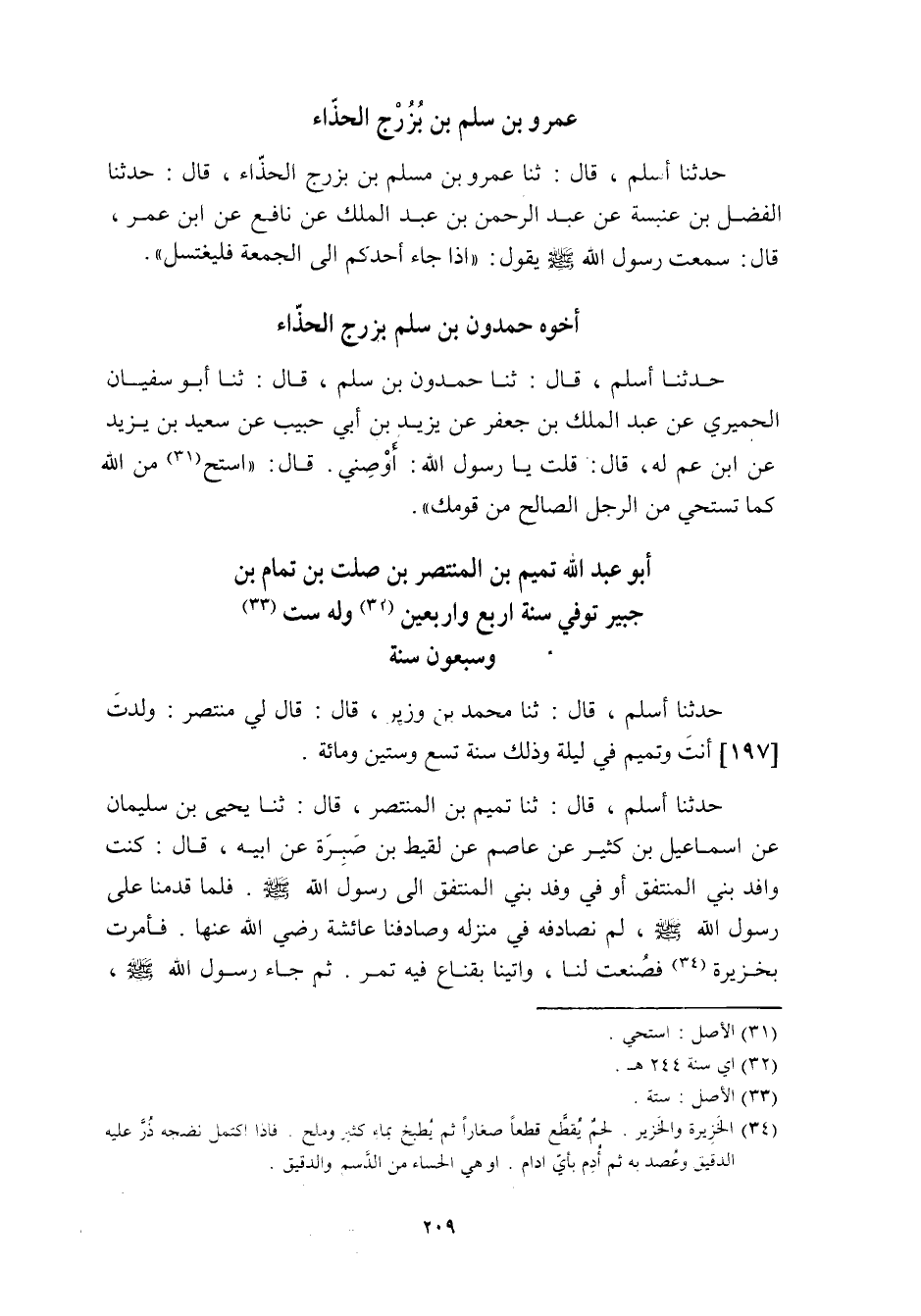 حدثنا أسلم، قَالَ: ثنا مُحَمَّد بن وزير، قَالَ: قَالَ لي منتصر: ولدت [197] أنت وتميم في ليلة وذلك سنة تسع وستين ومائة.