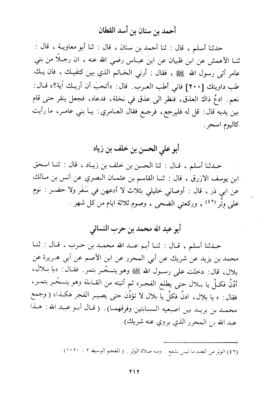حدثنا أسلم، قَالَ: ثنا أَحْمَدُ بْنُ سِنَانٍ، قَالَ: ثنا أَبُو مُعَاوِيَةَ، قَالَ:
