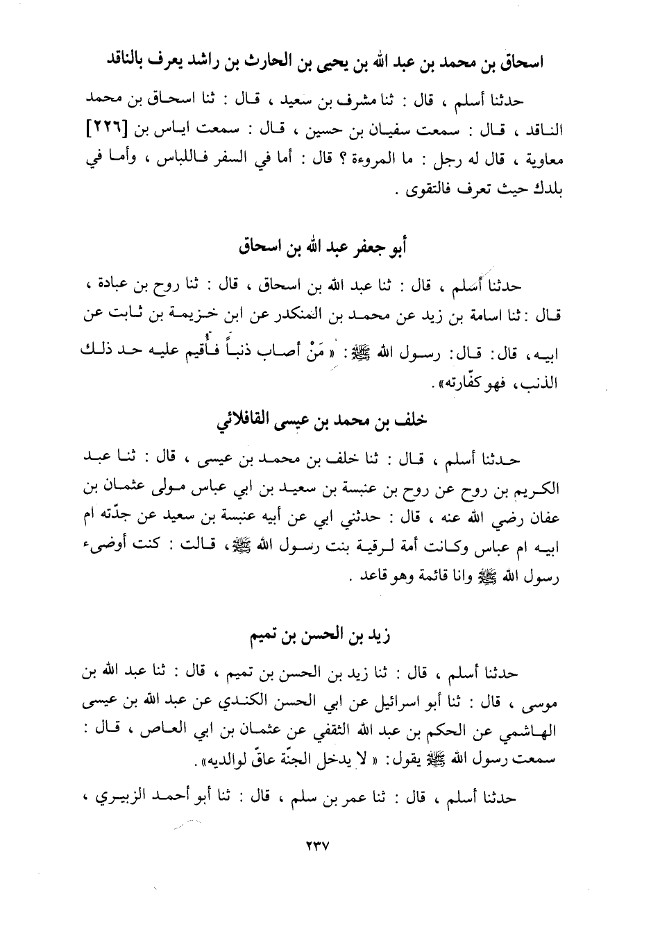 حدثنا أسلم، قال: ثنا عمر بن سلم، قال: ثنا أَبُو أَحْمَدَ الزُّبَيْرِيُّ،