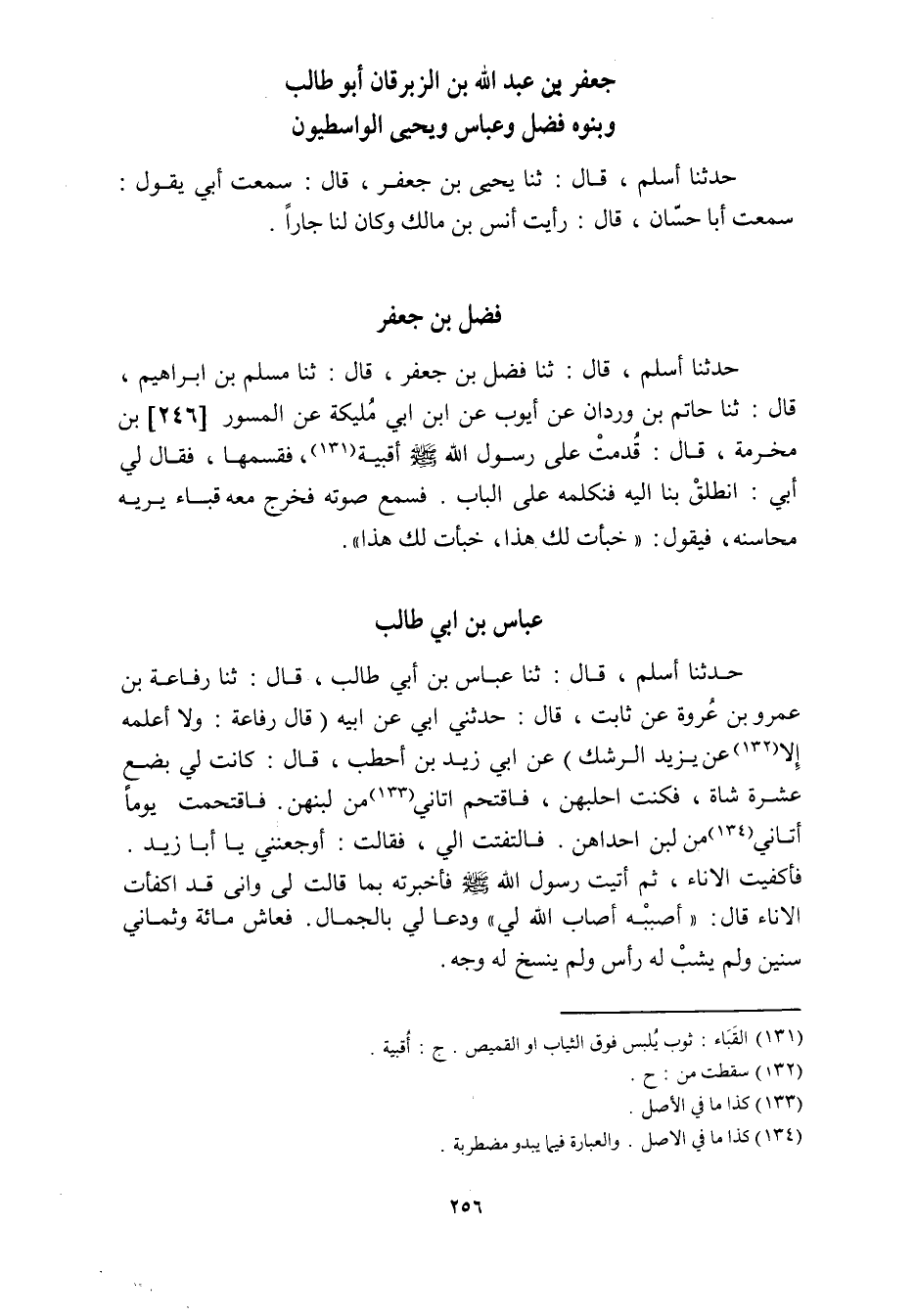حدثنا أسلم، قَالَ: ثنا عَبَّاسُ بْنُ أَبِي طَالِبٍ، قَالَ: ثنا رفاعة بن عمرو بن عروة عن ثَابِتٍ، قَالَ: حَدَّثَنِي أَبِي عَنْ أَبِيهِ (قَالَ رِفَاعَةُ: وَلا أَعْلَمُهُ إِلا «132» عَنْ يَزِيدَ الرَّشْكِ) عَنْ أَبِي زَيْدِ بْنِ أَحْطَبَ، قَالَ: كَانَتْ لِي بِضْعَ عَشْرَةَ شَاةً، فَكُنْتُ أَحْلِبُهُنَّ، فَاقْتَحَمَ أَتَانِي «133» مِنْ لَبَنِهِنَّ. فَاقْتَحَمَتْ يَوْمًا أَتَانِي «134» مِنْ لَبَنِ إِحْدَاهُنَّ. فَالْتَفَتَتْ إِلَيَّ، فَقَالَتْ: أَوْجِعْنَنِي يَا أَبَا زَيْدٍ.