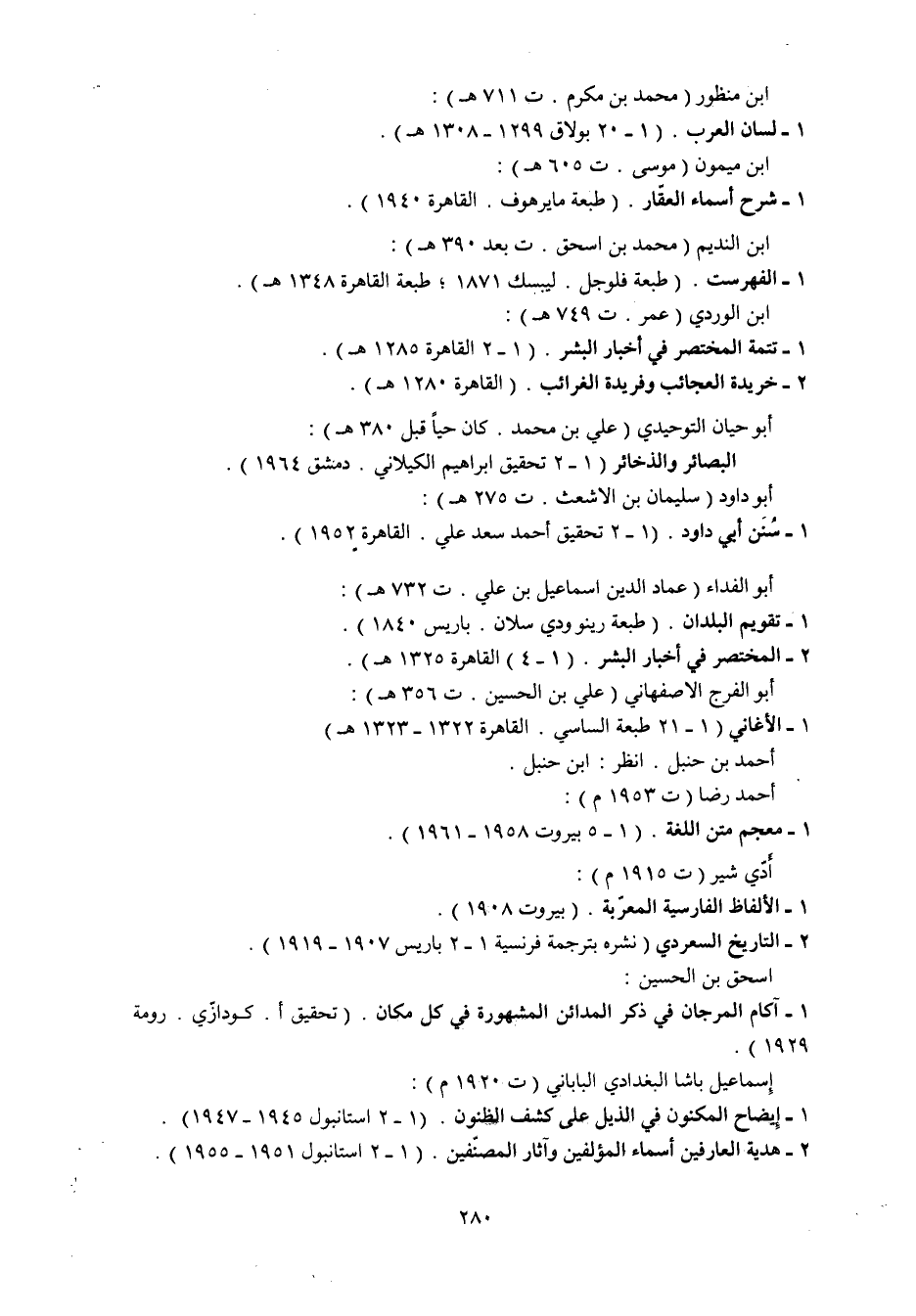2- هدية العارفين أسماء المؤلفين وآثار المصنّفين. (1- 2 استانبول 1951- 1955) .