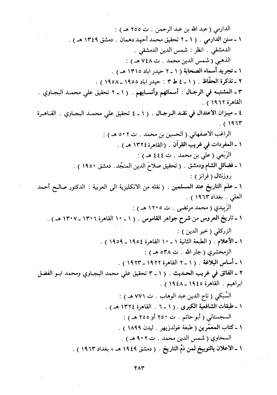 1- سنن الدارمي. (1- 2 تحقيق محمد أحمد دهمان. دمشق 1349 هـ) .