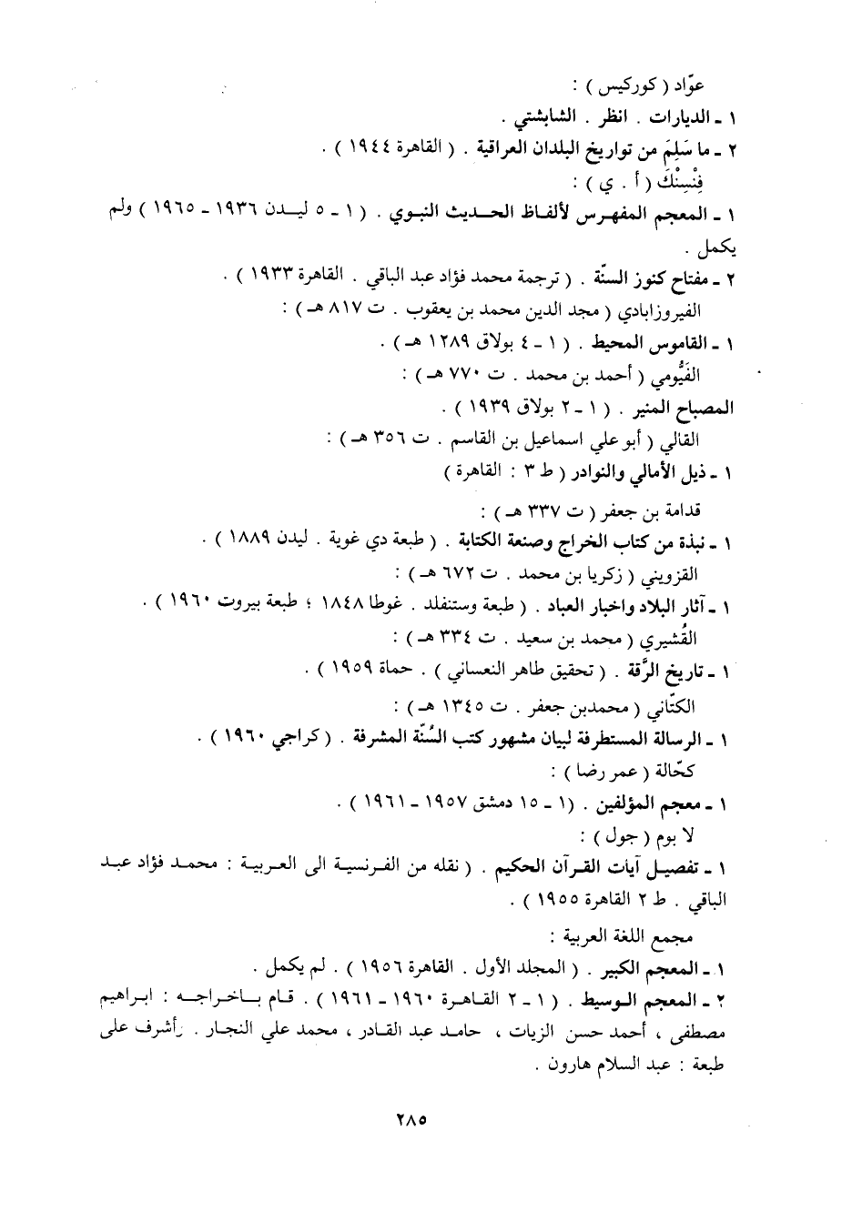 1- معجم المؤلفين. (1- 15 دمشق 1957- 1961) .