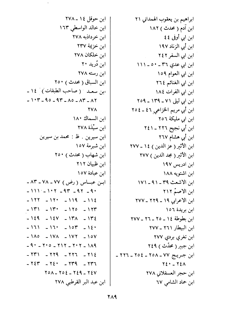 ابن عباس (رض) 77- 78- 83- 90- 92- 93- 102- 111- 114- 119- 120- 122- 123- 125- 130- 131- 134- 138- 147- 149- 140- 153- 160- 161- 157- 172- 178- 185- 189- 202- 212- 205- 90- 214- 226- 229- 231- 236- 239- 240- 243- 247- 249- 254- 258 ابن عبد البر القرطبي 278
