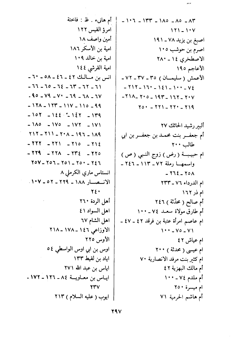 الأعمش (سليمان) 35- 37- 72- 74- 100- 141- 160- 212- 207- 162- 193- 205- 218- 219- 220- 221- 250