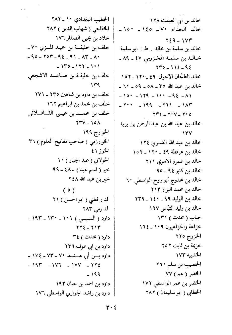 خلف بن خليفة بن حميد المزني 70- 80- 83- 91- 94- 253- 95- 101- 122- 135- خلف بن خليفة بن صاعد الاشجعي 139