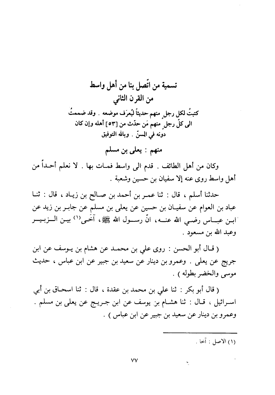 تسمية من اتصل بنا من أهل واسط من القرن الثاني