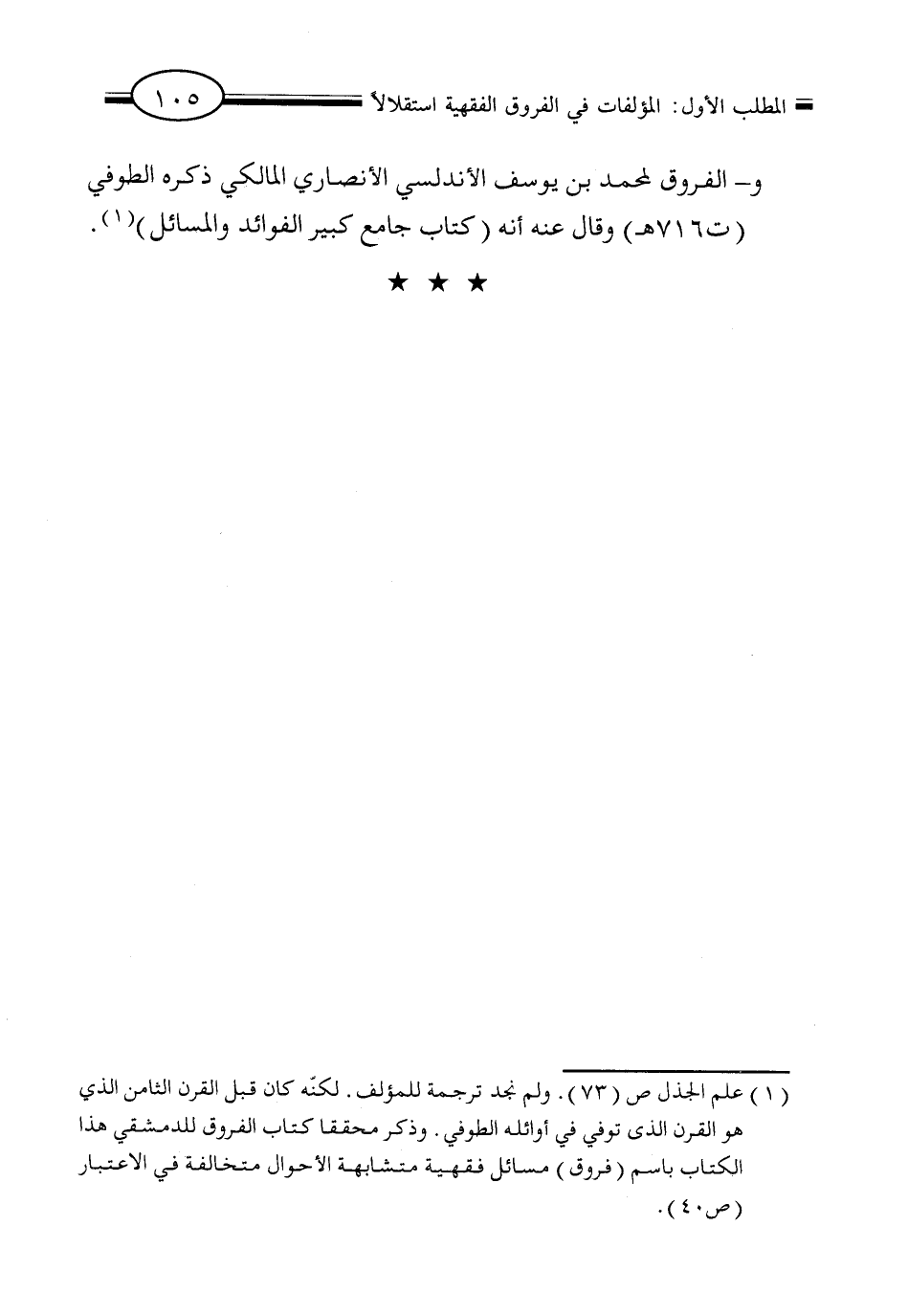 (١) علم الجذل ص (٧٣). ولم نجد ترجمة للمؤلف. لكنه كان قبل القرن الثامن الذي هو القرن الذي توفي في أوائله الطوفي. وذكر محققاً كتاب الفروق للدمشقي هذا الكتاب باسم (فروق) مسائل فقهية متشابهة الأحوال متخالفة في الاعتبار (ص ٤٠).