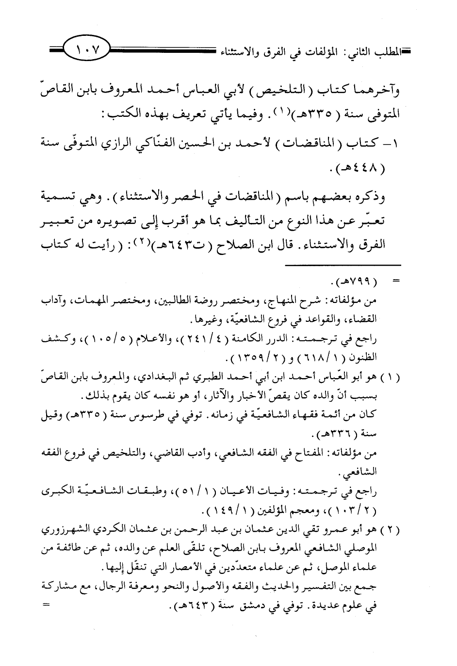 (٢) هو أبو عمرو تقي الدين عثمان بن عبد الرحمن بن عثمان الكردي الشهرزوري الموصلي الشافعي المعروف بابن الصلاح، تلقى العلم عن والده، ثم عن طائفة من علماء الموصل، ثم عن علماء متعددين في الأمصار التي تنقّل إليها.