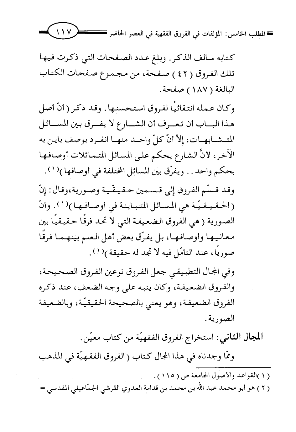 كتابه سالف الذكر. وبلغ عدد الصفحات التي ذكرت فيها تلك الفروق (٤٢) صفحة، من مجموع صفحات الكتاب البالغة (١٨٧) صفحة.