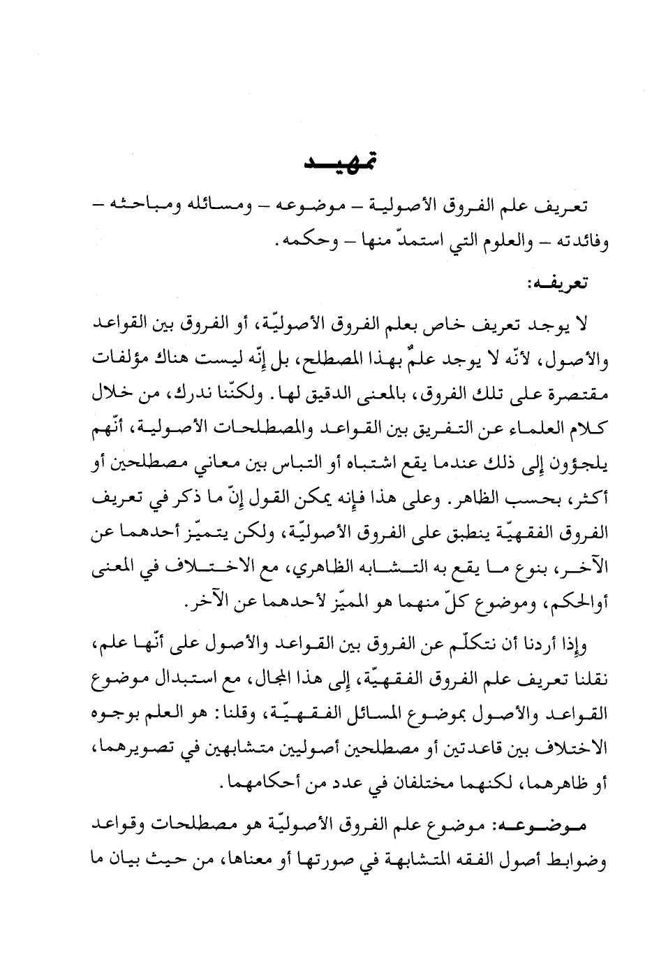 تعريف علم الفروق الأصولية- موضوعه- ومسائله ومباحثه- وفائدته- والعلوم التي استمد منها- وحكمه.