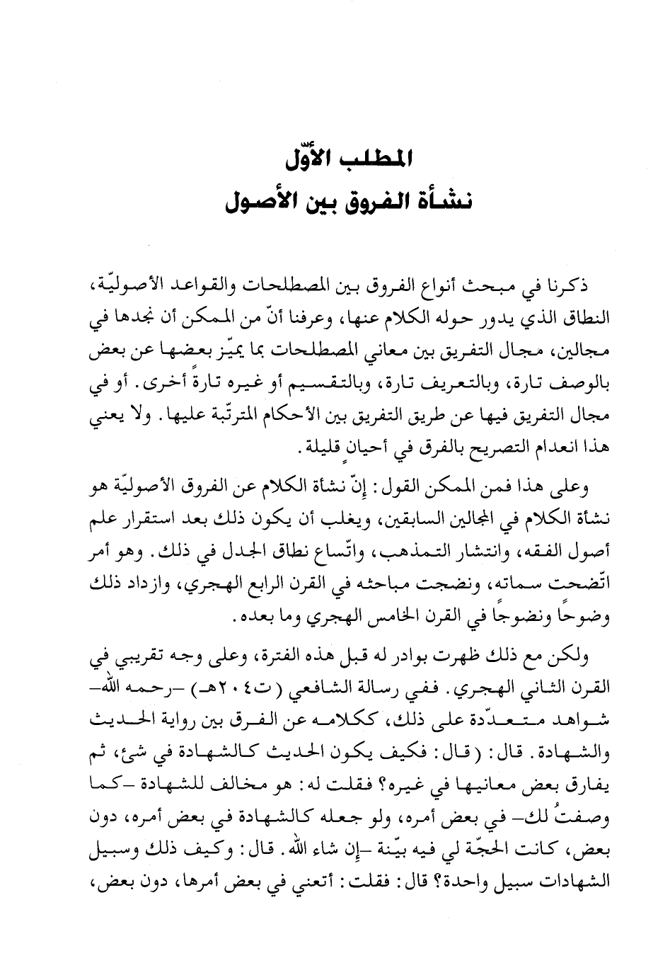 وعلى هذا فمن الممكن القول: إن نشأة الكلام عن الفروق الأصولية هو نشأة الكلام في المجالين السابقين، ويغلب أن يكون ذلك بعد استقرار علم أصول الفقه، وانتشار التمذهب، واتساع نطاق الجدل في ذلك. وهو أمر اتضحت سماته، ونضجت مباحثه في القرن الرابع الهجري، وازداد ذلك وضوحاً ونضوجاً في القرن الخامس الهجري وما بعده.
