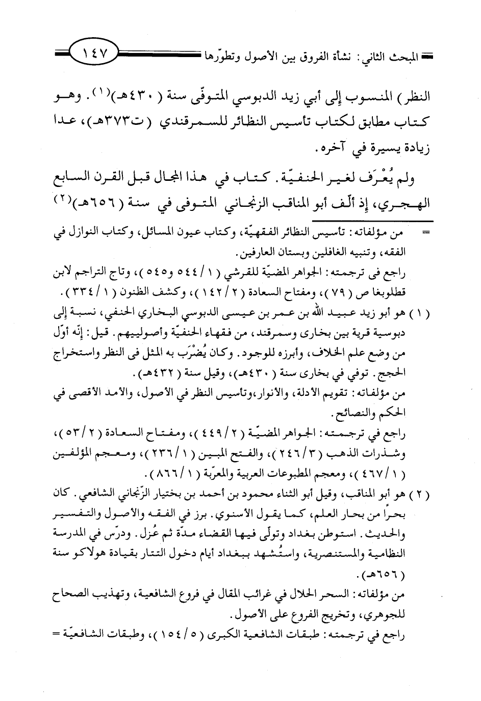 ولم يُعْرَف لغير الحنفية. كتاب في هذا المجال قبل القرن السابع الهجري، إذ ألّف أبو المناقب الزنجاني المتوفي في سنة (٦٥٦ هـ) (٢)