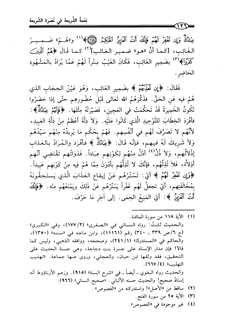 فَقَالَ {إِن تُعَذبهُمْ} بضمير الْغَائِب وَهُوَ عين الْحجاب الَّذِي هم فِيهِ عَن الْحق