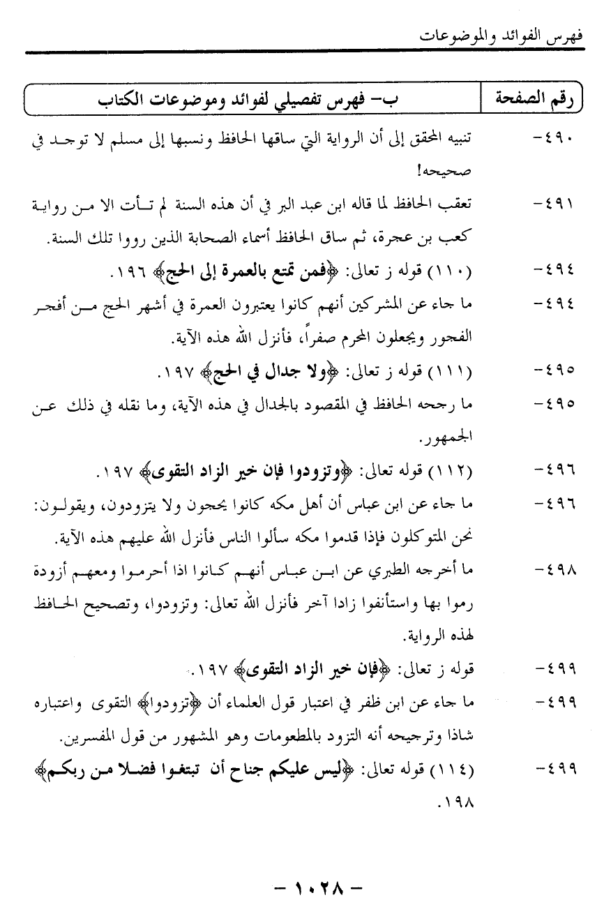 494- "110" قوله تعالى: {فَمَنْ تَمَتَّعَ بِالْعُمْرَةِ إِلَى الْحَجِّ} 196.