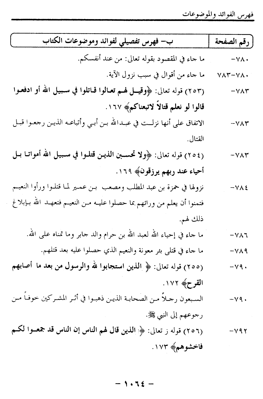 783- "254" قوله تعالى: {ولا تحسبن الذين قتلوا في سبيل الله أمواتا بل أحياء عند ربهم يرزقون} 169.