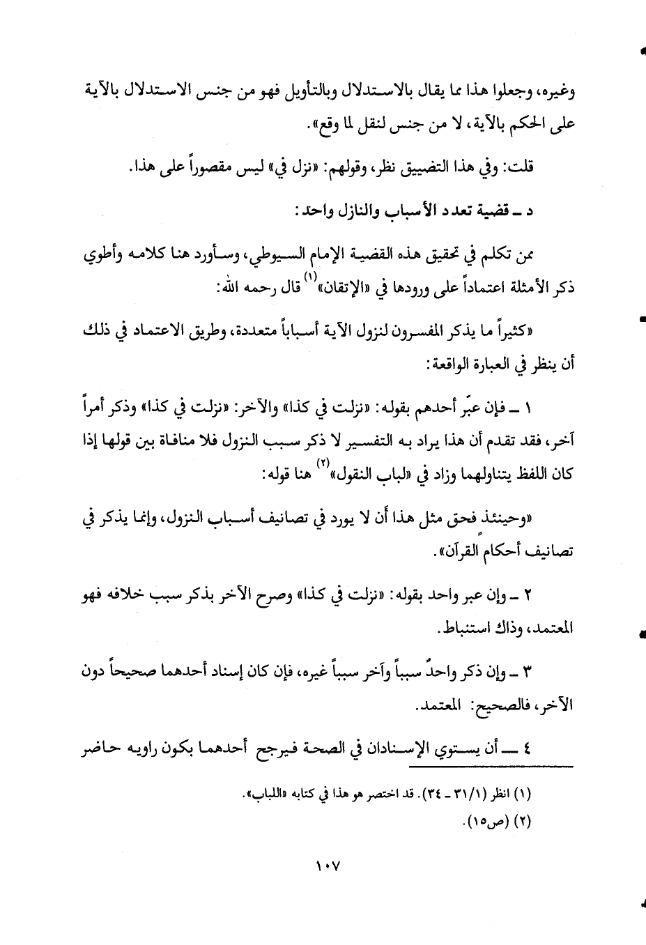 1- فإن عبر أحدهم بقوله: "نزلت في كذا" والآخر: "نزلت في كذا" وذكر أمرًا آخر، فقد تقدم أن هذا يراد به التفسير لا ذكر سبب النزول فلا منافاة بين قولها إذا كان اللفظ يتناولهما وزاد في "لباب النقول"2 هنا قوله: