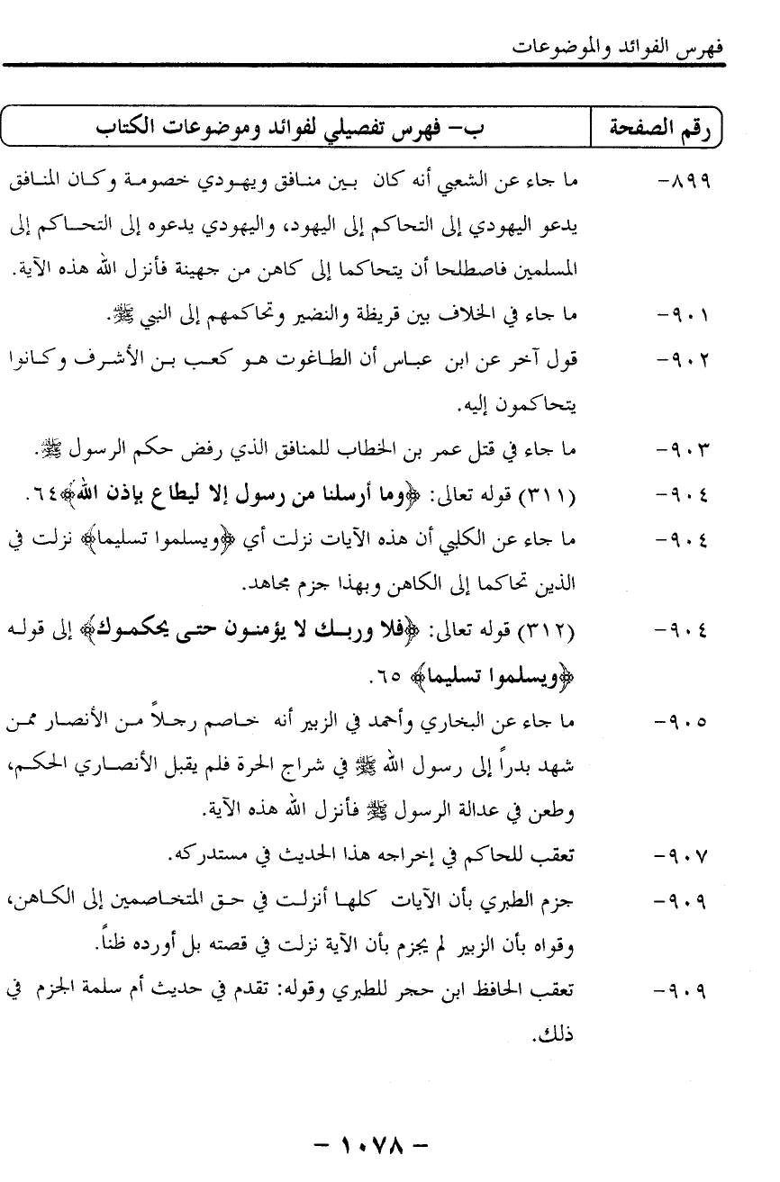 905- ما جاء عن البخاري وأحمد في الزبير أنه خاصم رجلا من الأنصار ممن شهد بدرا إلى رسول الله صلى الله عليه وسلم في شراج الحرة فلم يقبل الأنصاري الحكم، وطعن في عدالة الرسول فأنزل الله هذه الآية.