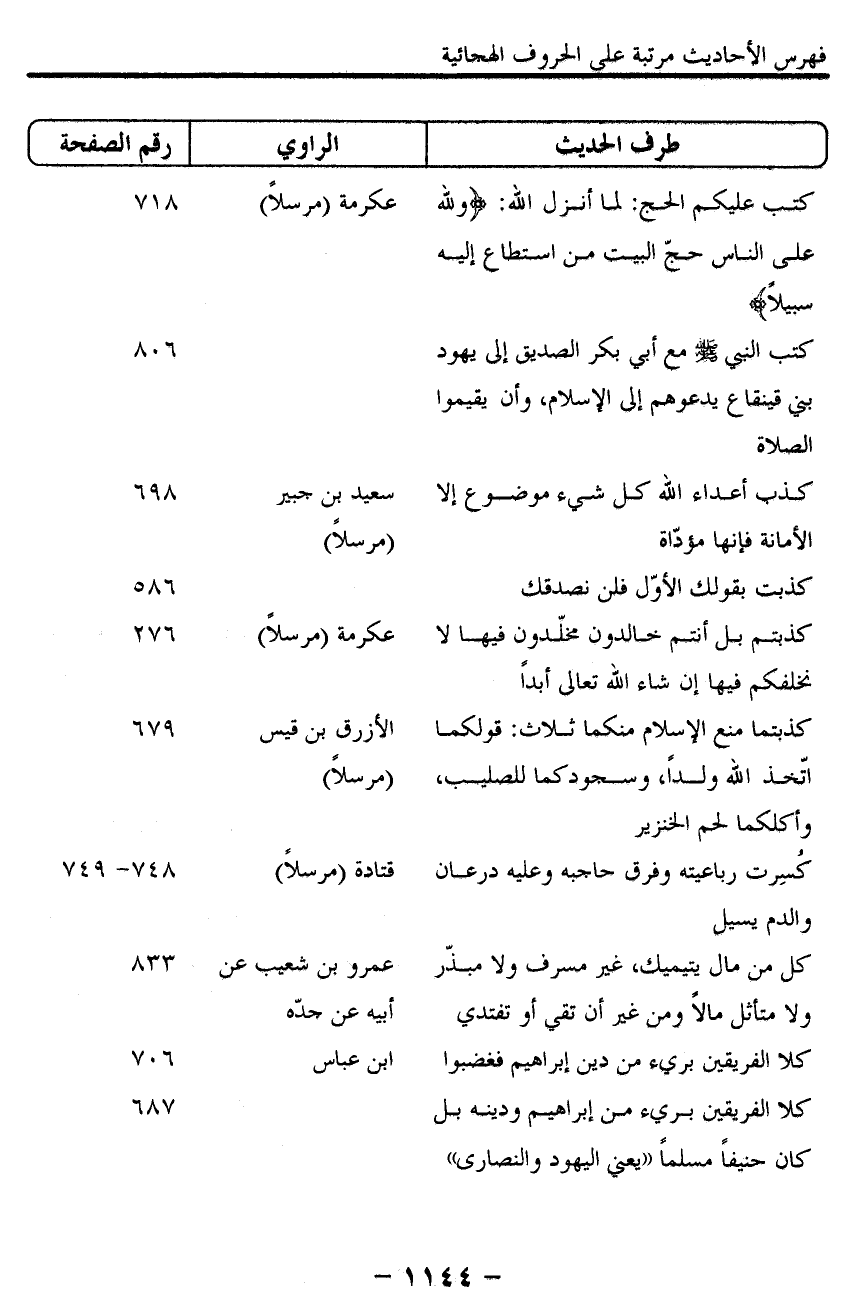 كذبتما منع الإسلام منكما ثلاث: قولكما اتخذ الله ولدا، وسجود كما للصليب، وأكلكما لحم الخنزير الأزرق بن قيس "مرسلا" 679