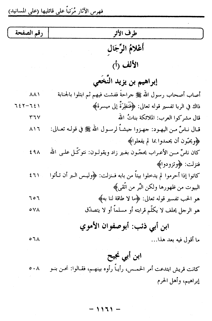 فهرس الآثار مرتبة على القائلين: المسانيد