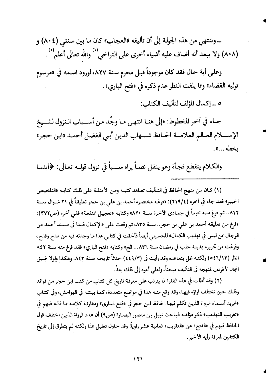 - وننتهي من هذه الجولة إلى أن تأليفه "العجاب" كان ما بين سنتي "804" و"808" ولا يبعد أنه أضاف عليه أشياء أخرى على التراخي1 والله تعالى أعلم2.