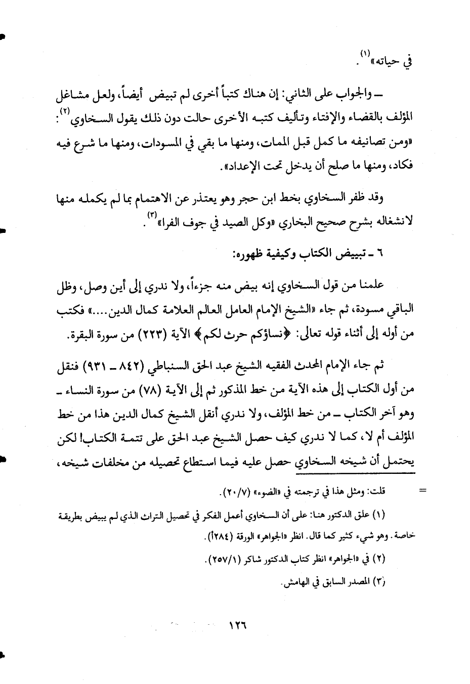 1 علق الدكتور هنا: على أن السخاوي أعمل الفكر في تحصيل التراث الذي لم يبيض بطريقة خاصة. وهو شيء كثير كما قال. انظر "الجواهر" الورقة "284أ".
