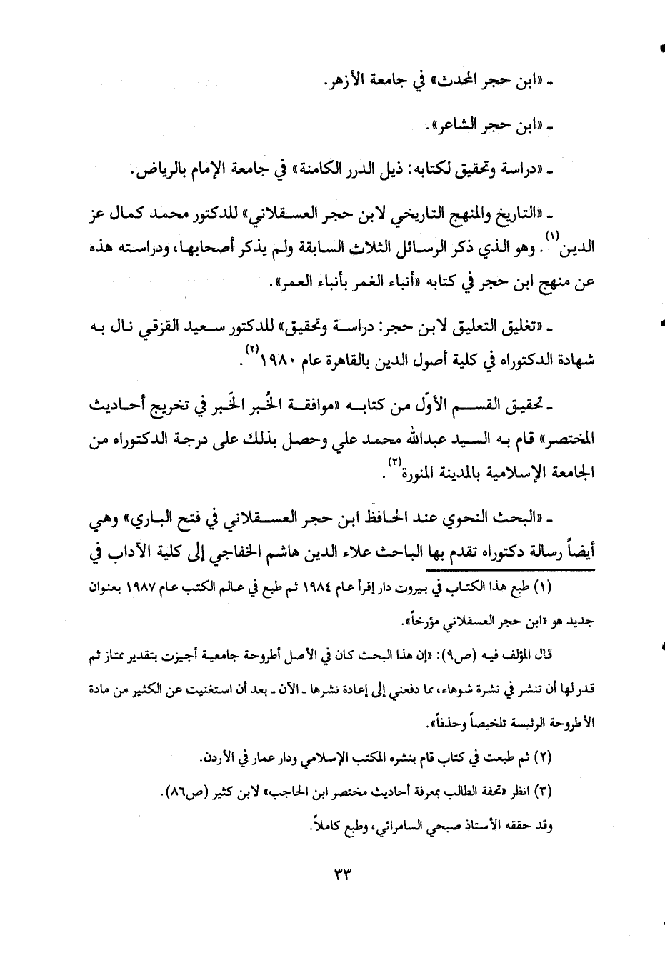 - "تغليق التعليق لابن حجر: دراسة وتحقيق" للدكتور سعيد القزقي نال به شهادة الدكتوراه في كلية أصول الدين بالقاهرة عام 1980 2.