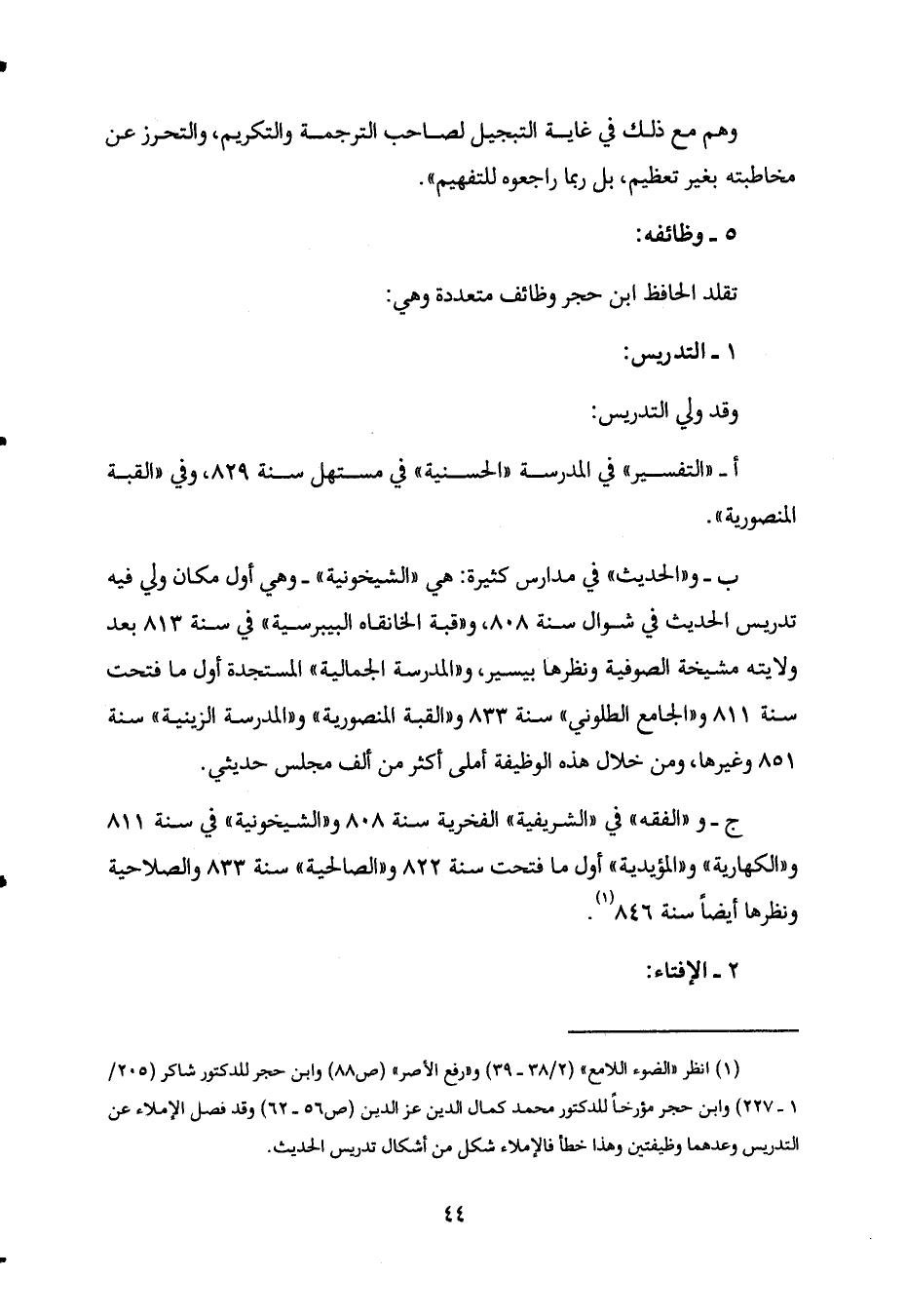 1 انظر "الضوء اللامع" "2/ 38-39" و"رفع الأصر" "ص88" وابن حجر للدكتور شاكر "205/ 1-227" وابن حجر مؤرخًا للدكتور محمد الدين عز الدين "ص56-62" وقد فصل الإملاء عن التدريس وعدهما وظيفتين وهذا خطأ فالإملاء شكل من أشكال تدريس الحديث.