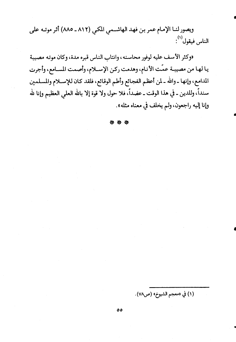 ويصور لنا الإمام عمر بن فهد الهاشمي المكي "812-885" أثر موته على الناس فيقول1: