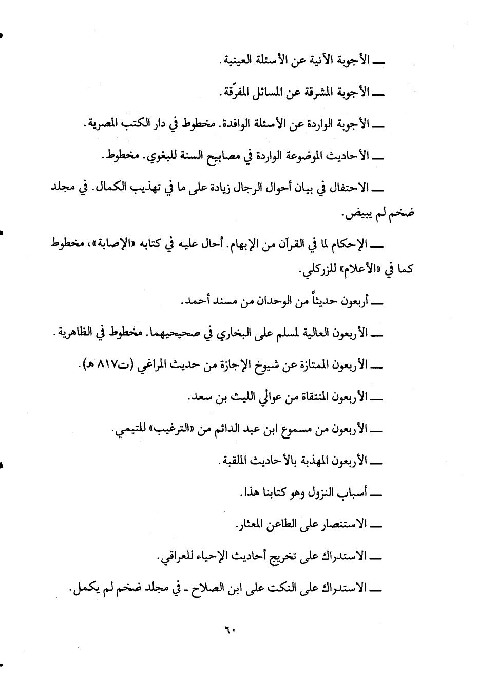 - الأربعون العالية لمسلم على البخاري في صحيحهما. مخطوط في الظاهرية.