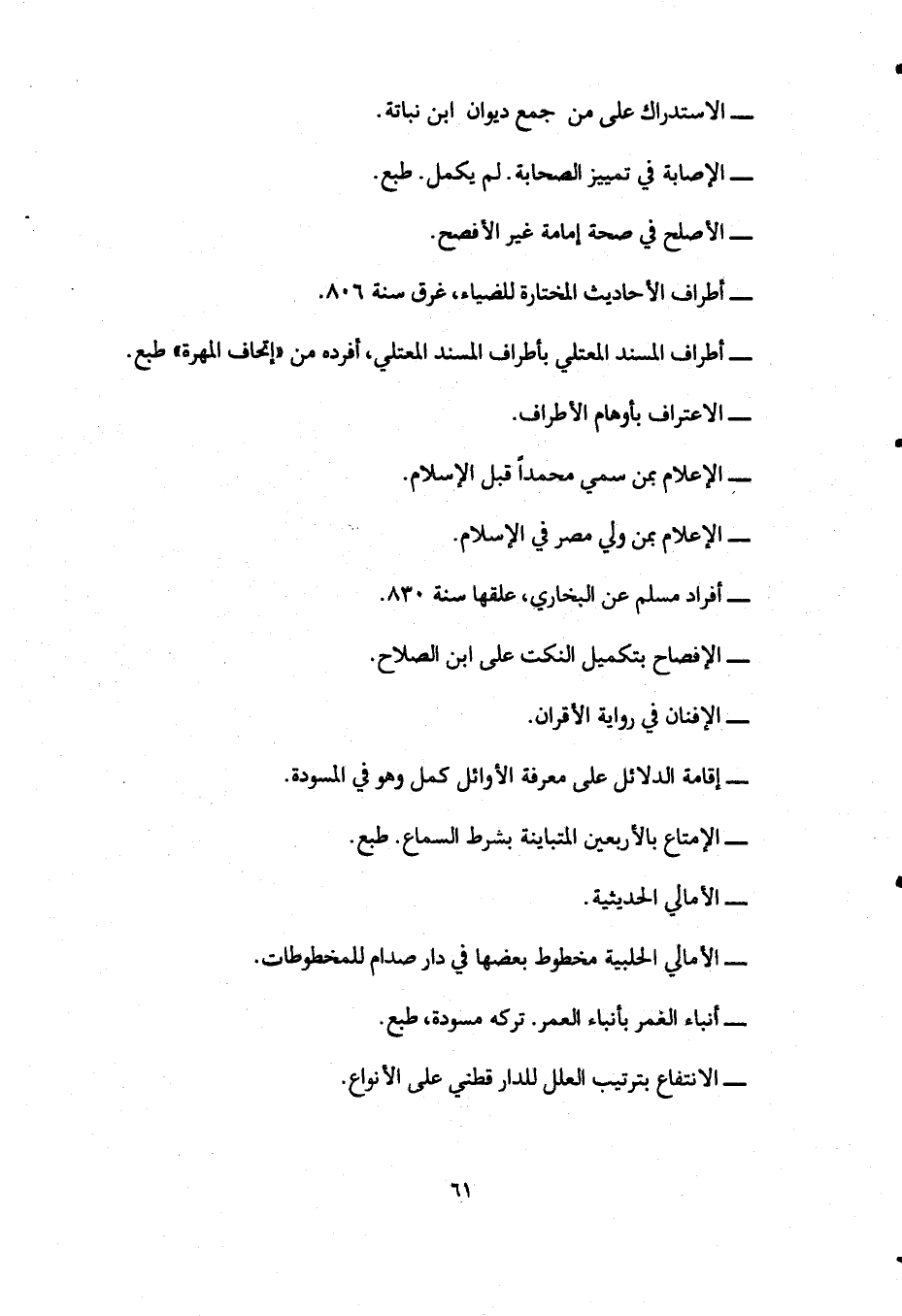 - الإصابة في تمييز الصحابة. لم يكمل. طبع.