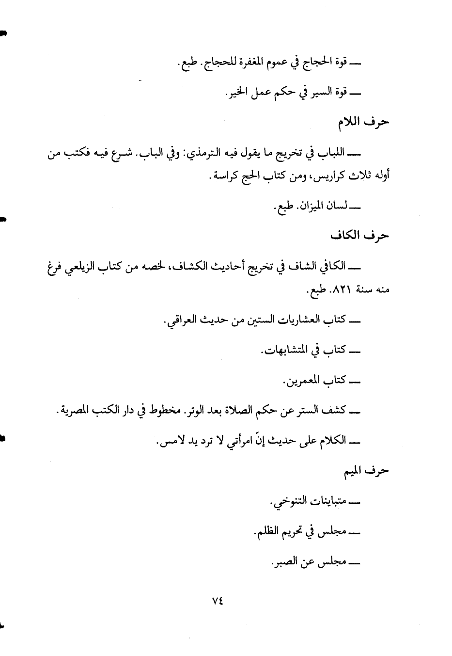 - الكافي الشاف في تخريج أحاديث الكشاف، لخصه من كتاب الزيلعي فرغ منه سنة 821. طبع.