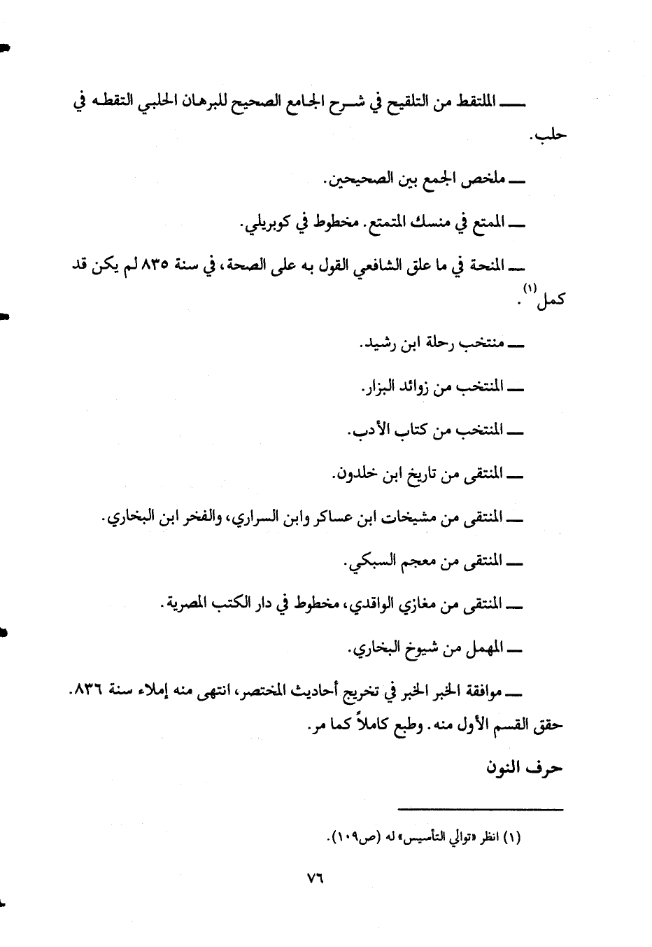 - المنحة في ما علق الشافعي القول به على الصحة، في سنة 835 لم يكن قد كمل1.