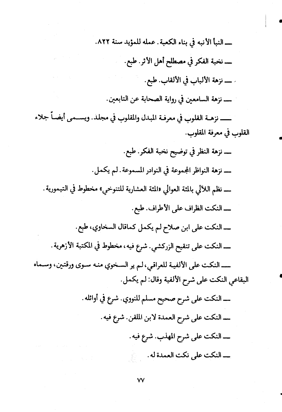 - نزهة النظر في توضيح نخبة الفكر. طبع.