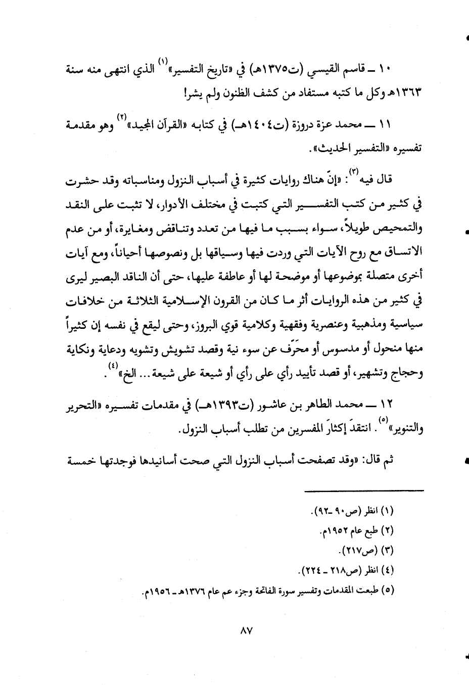 11- محمد عزة دروزة "ت1404هـ" في كتابه "القرآن المجيد"2 وهو مقدمة تفسيره "التفسير الحديث".