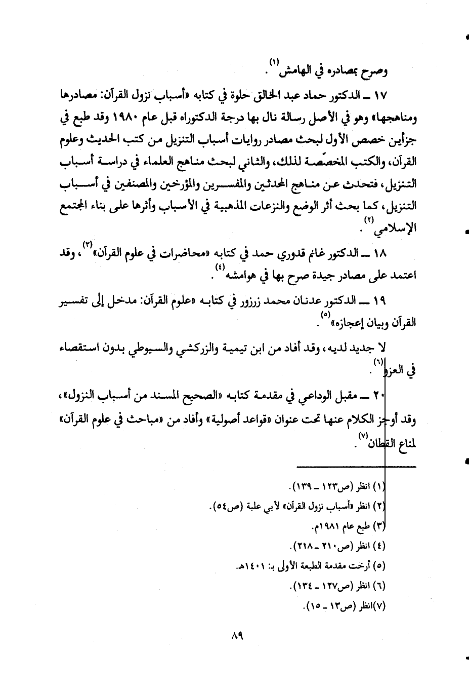 18- الدكتور غانم قدوري حمد في كتابه "محاضرات في علوم القرآن"3، وقد اعتمد على مصادر جيدة صرح بها في هوامشه4.