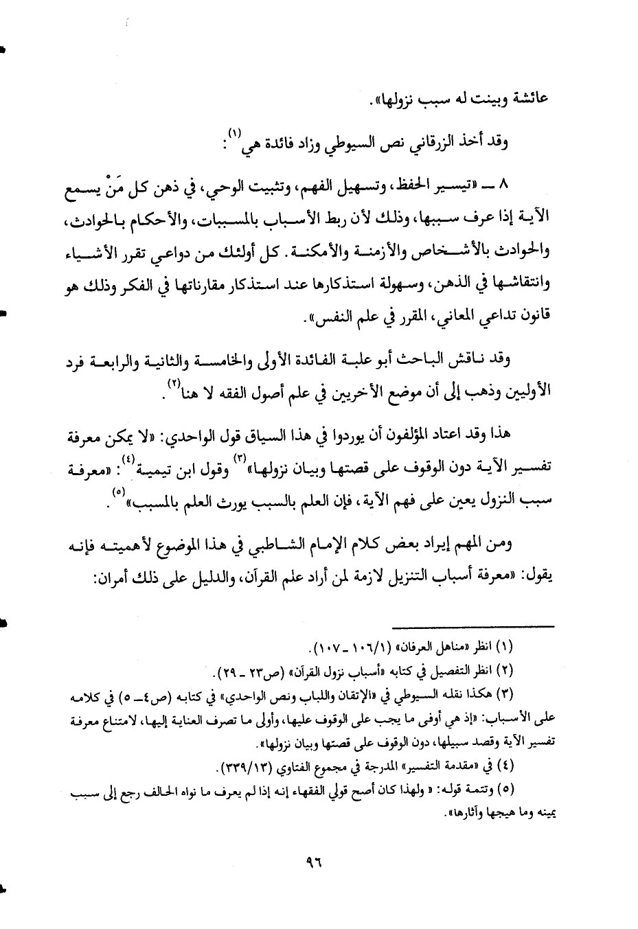 3 هكذا نقله السيوطي في "الإتقان واللباب ونص الواحدي" في كتابه "ص4-5" في كلامه على الأسباب: "إذ هي أوفى ما يجب على الوقوف عليها، وأولى ما تصرف العناية إليها، لامتناع معرفة تفسير الآية وقصد سبيلها، دون الوقوف على قصتها وبيان نزولها".