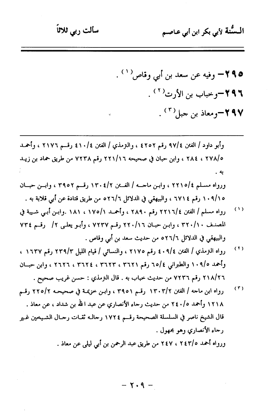 295 - وَفِيهِ عَنْ سَعْدِ بْنِ أَبِي وَقَّاصٍ.