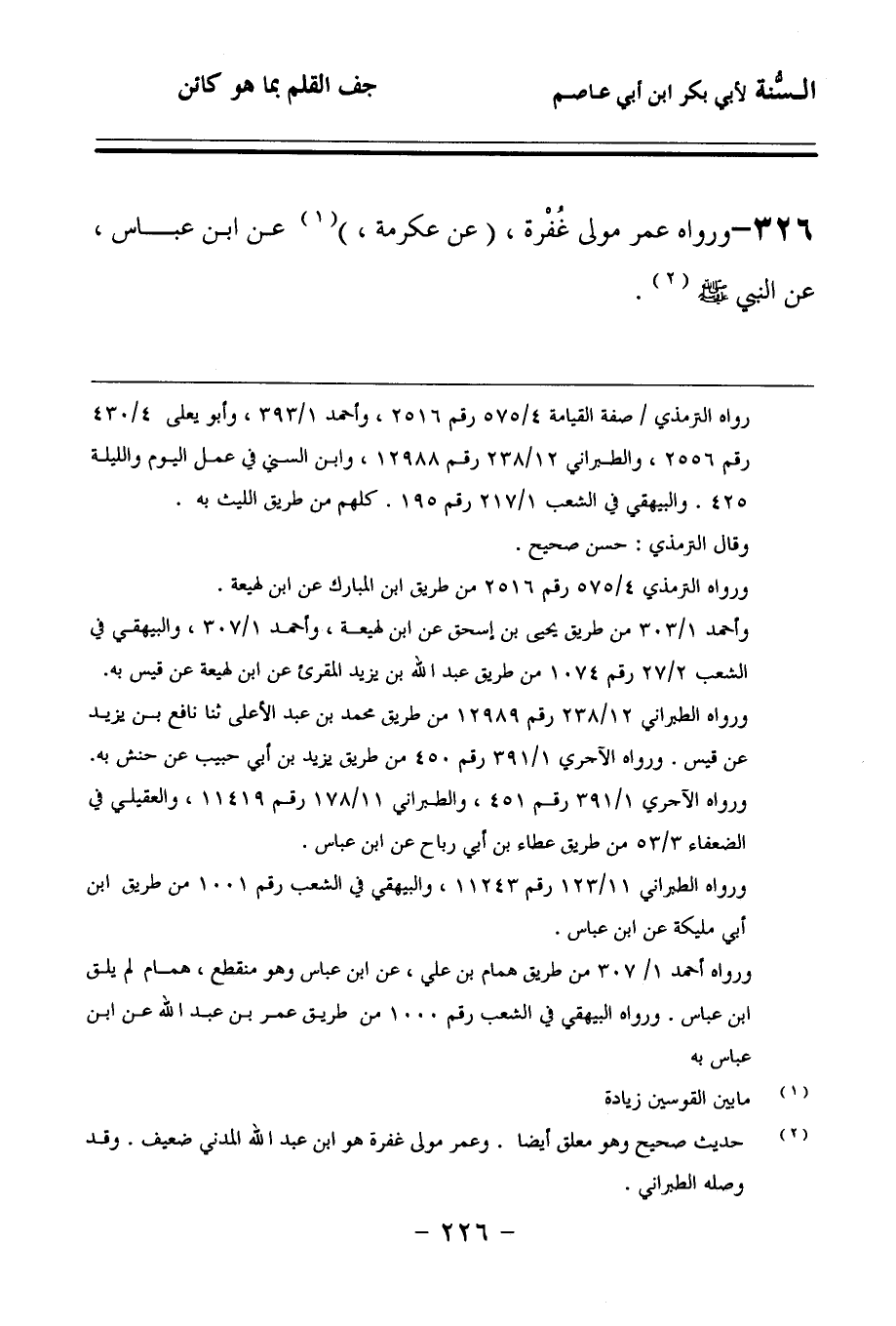 326 - وَرَوَاهُ عُمَرُ، مَوْلَى غُفْرَةَ، (عَنْ عِكْرِمَةَ) , عَنِ ابْنِ عَبَّاسٍ، عَنِ النَّبِيِّ صَلى الله عَلَيهِ وسَلمَ.