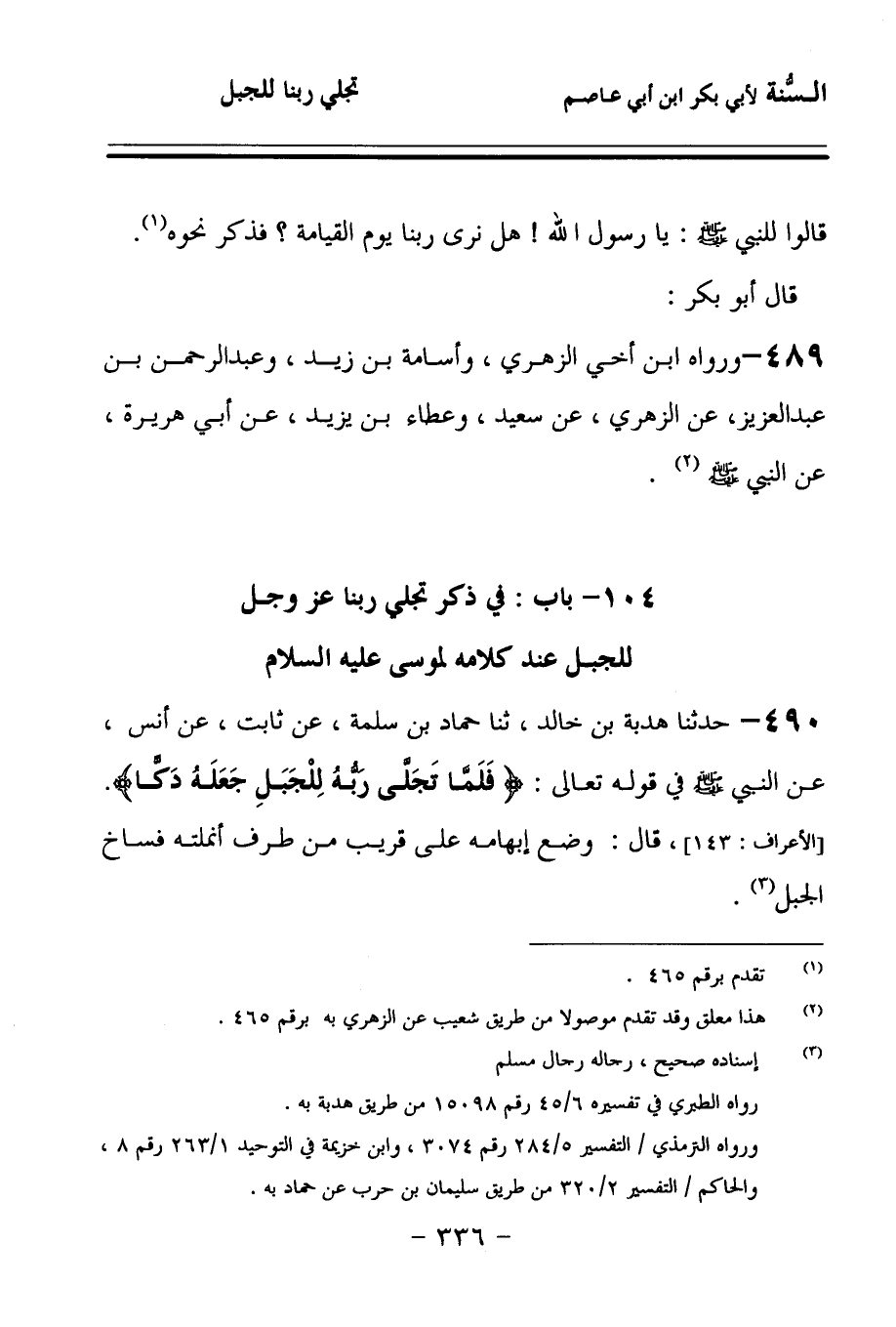 104 - بَابٌ فِي ذِكْرِ تَجَلِّي رَبِّنَا عَزَّ وَجَلَّ لِلْجَبَلِ عِنْدَ كَلاَمِهِ لِمُوسَى عَلَيْهِ السَّلاَمُ.