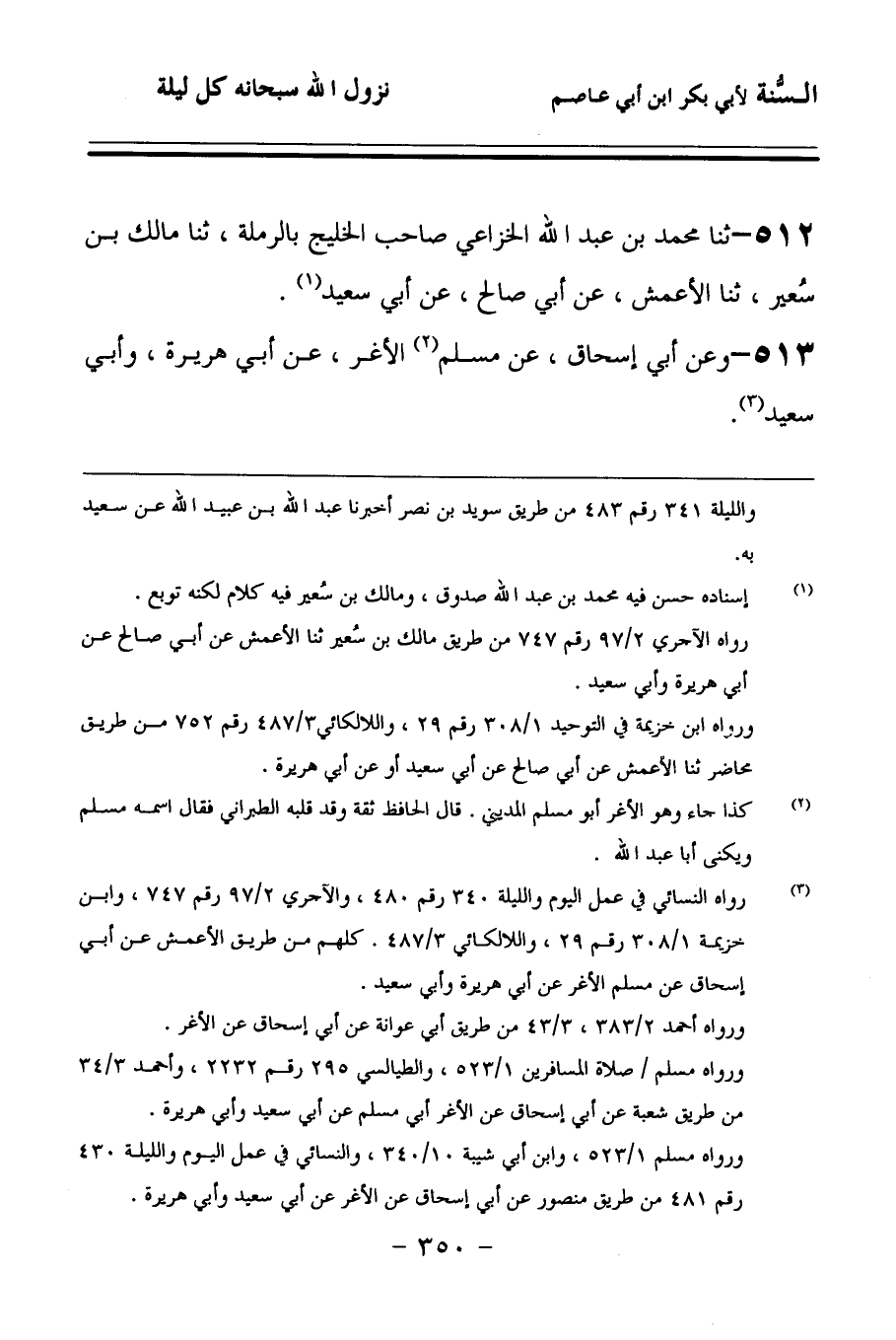 512 - حَدَّثنا مُحَمَّدُ بْنُ عَبْدِ اللهِ الْخُزَاعِيُّ، صَاحِبُ الْخَلَنْجِ (1) بِالرَّمْلَةِ، حَدَّثنا مَالِكُ بْنُ سُعَيْرٍ، حَدَّثنا الأَعْمَشُ، عَنْ أَبِي صَالِحٍ، عَنْ أَبِي سَعِيدٍ.