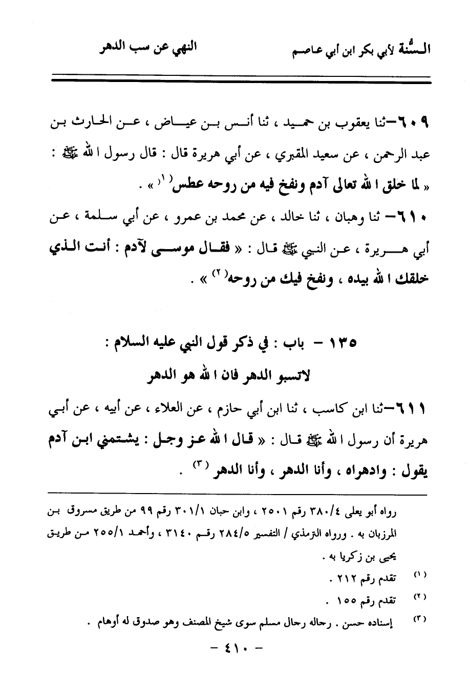 135 - بَابٌ فِي ذِكْرِ قَوْلِ النَّبِيِّ عَلَيْهِ السَّلاَمُ: لاَ تَسُبُّوا الدَّهْرَ؛ فَإِنَّ اللهَ هُوَ الدَّهْرُ.